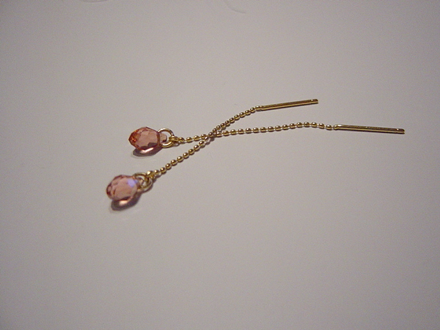 ローズピンクのスワロフスキーのドロップ。