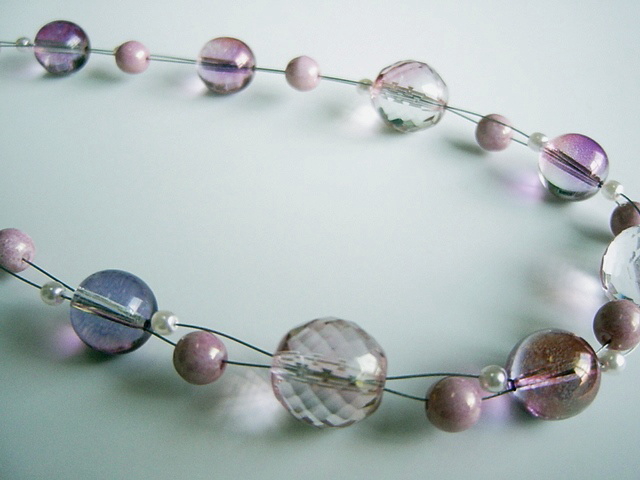 チェコビーズの透明感が涼しげなネックレス。