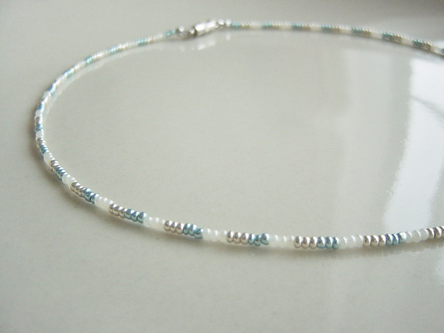 極小ビーズをつないだだけのシンプルネックレス。