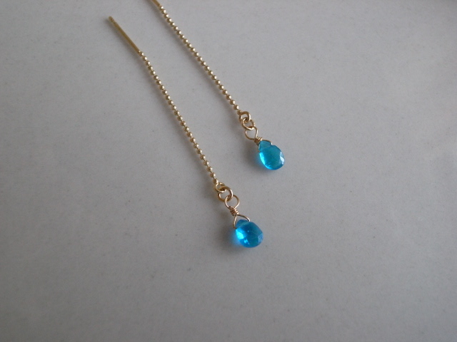 綺麗なブルーが印象的なアパタイトのアメリカンピアス。